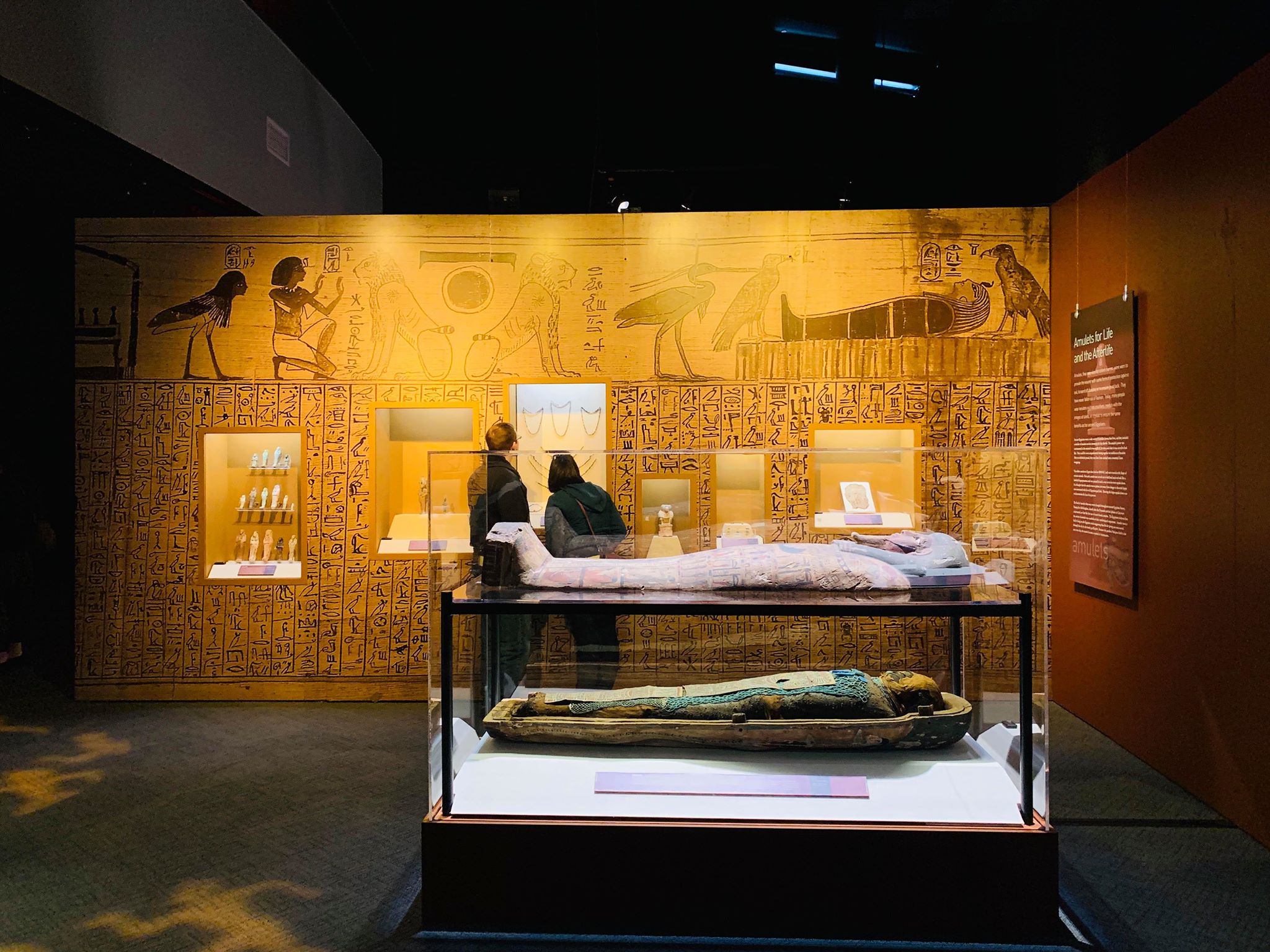 The exhibit begins with a short introduction video, after the video, attendees will come face-to-face with an Egyptian sarcophagus. From there, visitors will embark on a journey through the world of mummies in an immersive exhibit. Each section of the exhibit will explain how different mummies were created in different regions, as well as the history of the individuals on display. Instead of simply seeing mummies, viewers will get to know characteristics about the once living people they’re visiting. While most people are familiar with what some might consider “traditional” mummies, the exhibit exposes viewers to bundle mummies, shrunken heads, the unique bog people, and even a North American mummy from as recent as 1994.